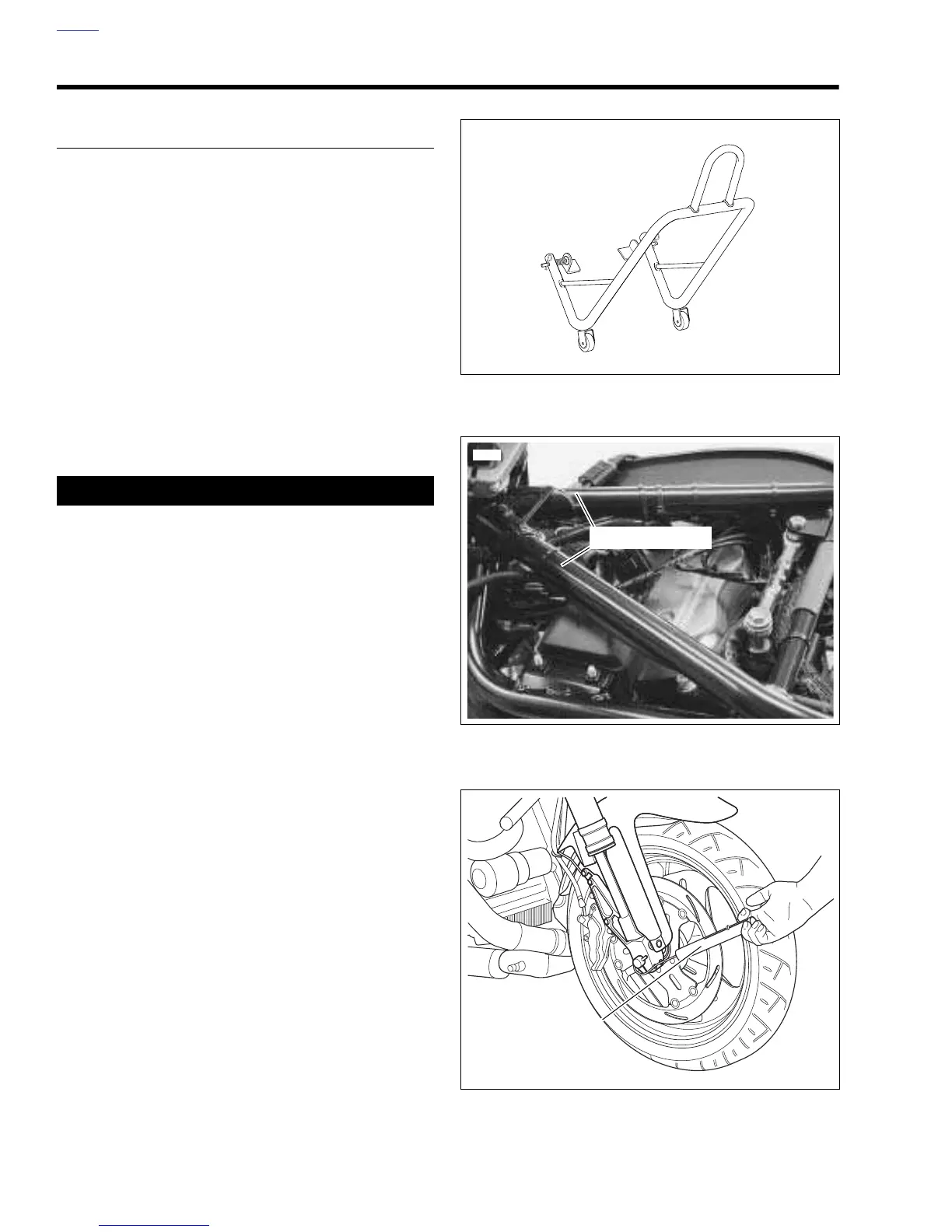 behind steering neck. Raise front wheel off floor using a
