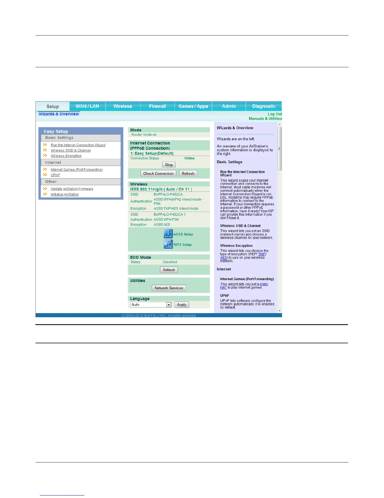 This is the home page of the conguration interface. You can verify settings and the status of the