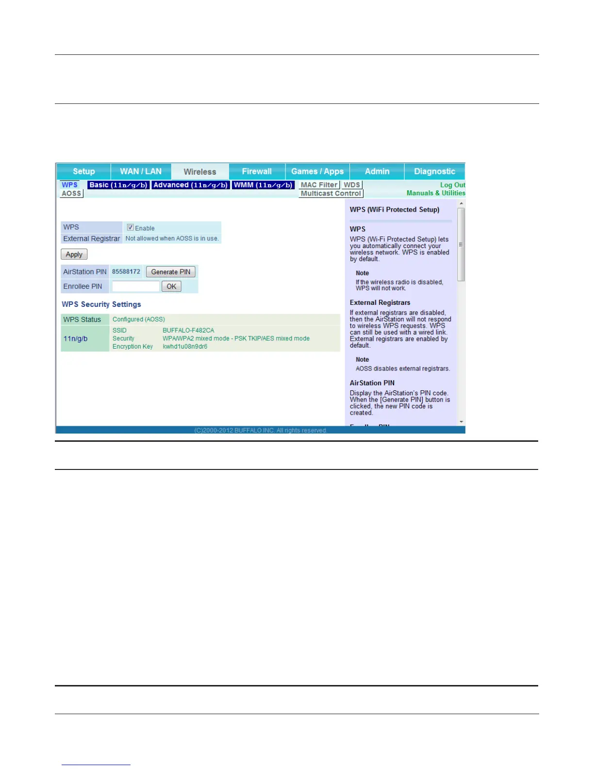 AirStation PIN Displays the PIN code of the AirStation. Clicking [Generate PIN]