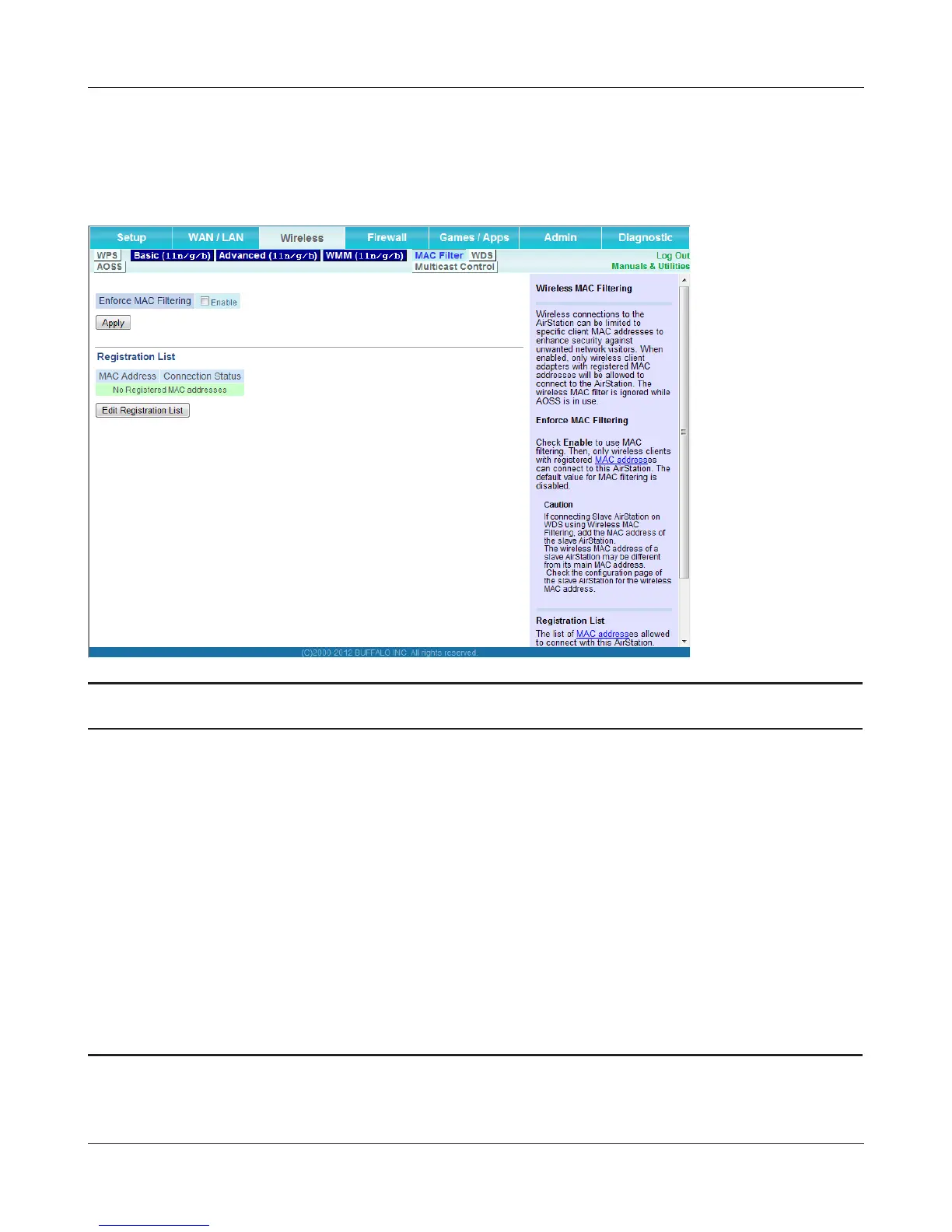 Edit Registration List Click this button to add a MAC address of a wireless device to the