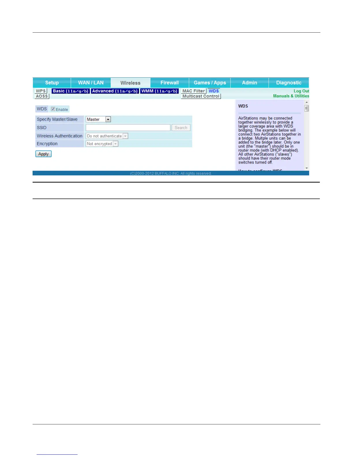 Specify Master/Slave Dene this AirStation's role in a WDS bridge.
