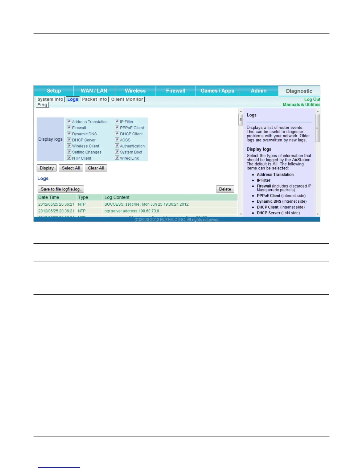 Buffalo AirStation NFINITI High Power WHR-300HP - Logs
