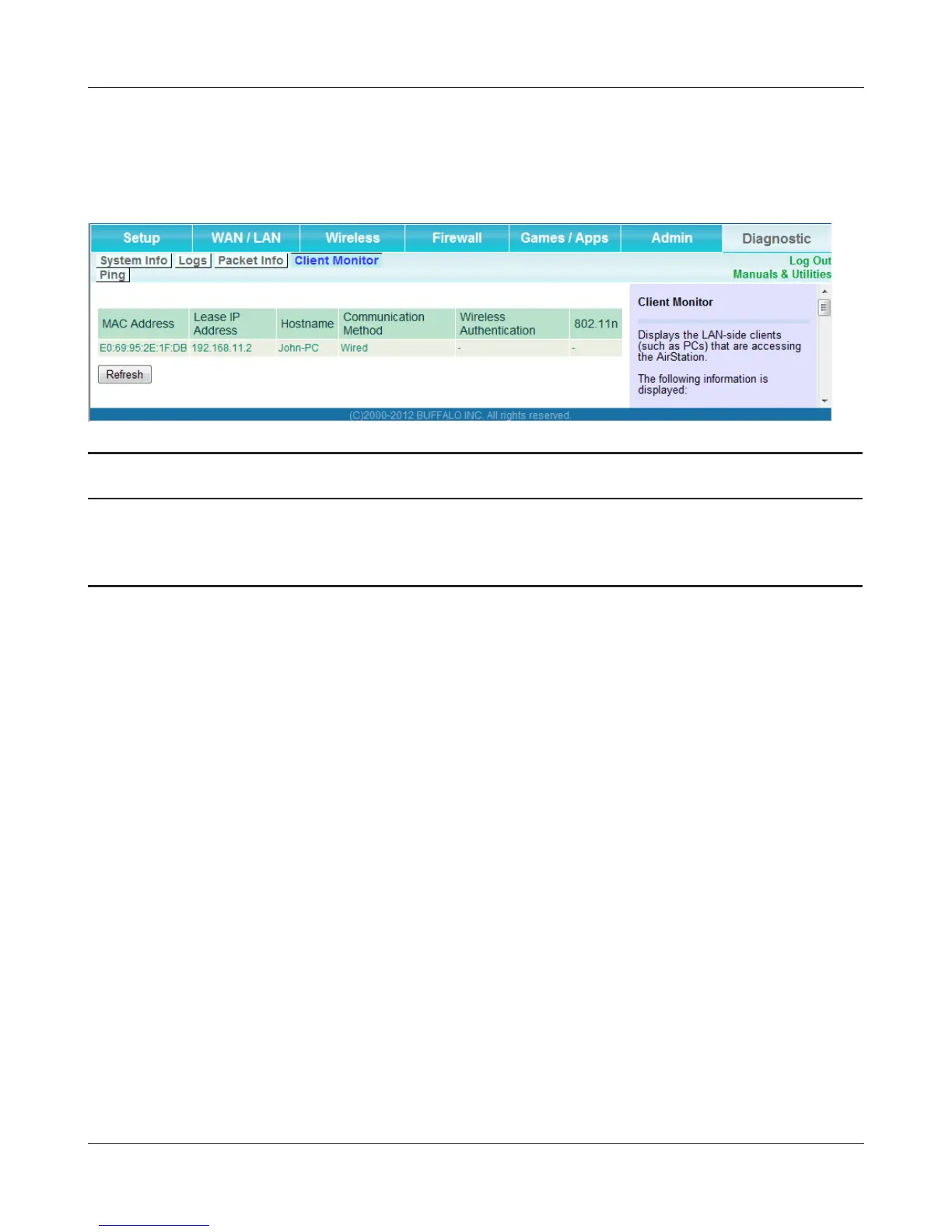 Client Monitor Displays information ( MAC address, lease IP address, hostname,