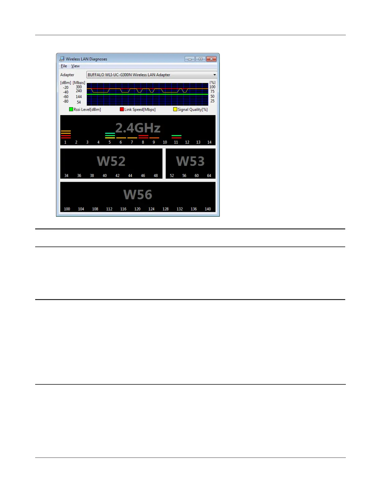 Usage status by channel The 11b/11g display shows usage in the 2.4 GHz band channels 1