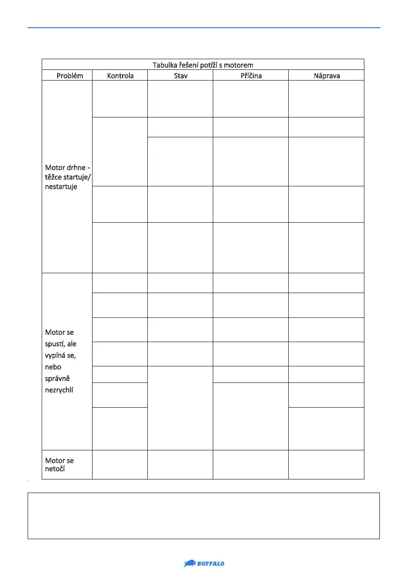 Tabulka ešení poí s motorem