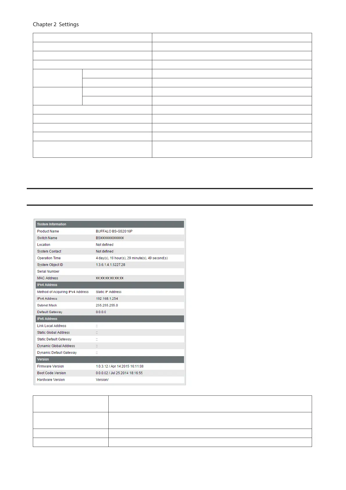 Version Displays the switch’s firmware, boot code, and hardware version.