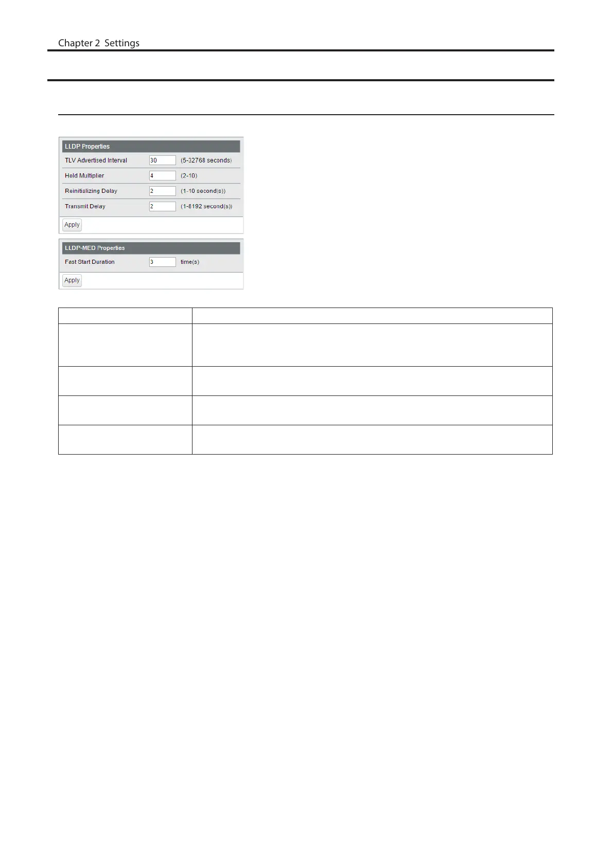 TLV Advertised Interval Enter the interval of sending LLDP packets. (5-32768 seconds)