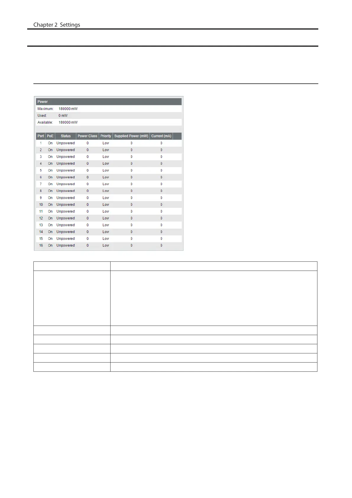 right of "Available") is 16000 mW (16 W) or lower, the switch will not supply PoE