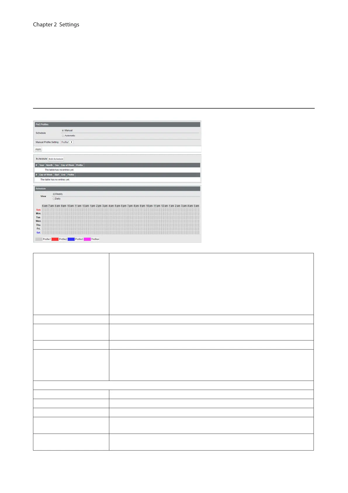 Manual Profile Setting Select a profile to be used when the schedule is set to [Manual].