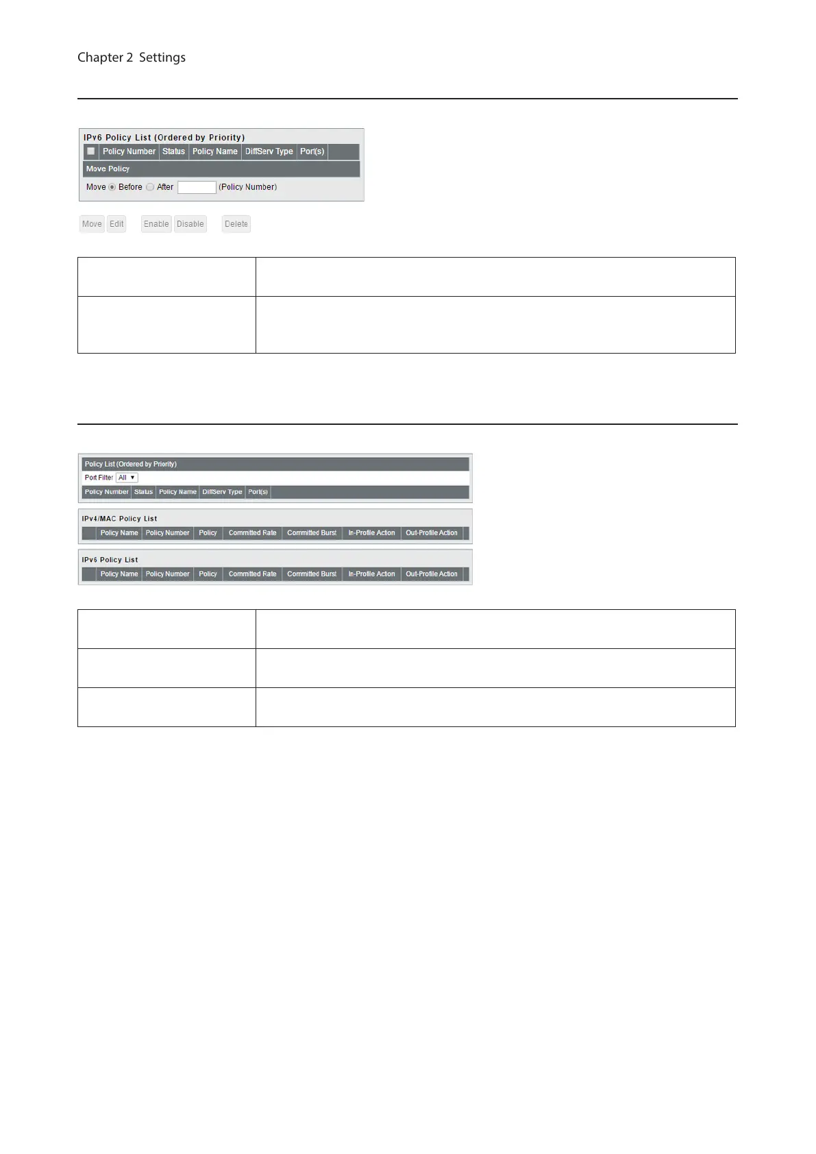 Displays the list of policies. Policies are listed in order of the priority. Select a port