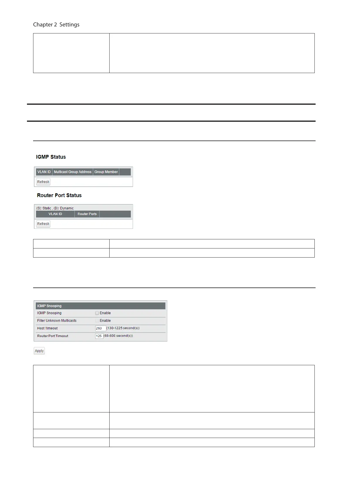 Router Port Timeout Enter the timeout length for the multicast router (server).