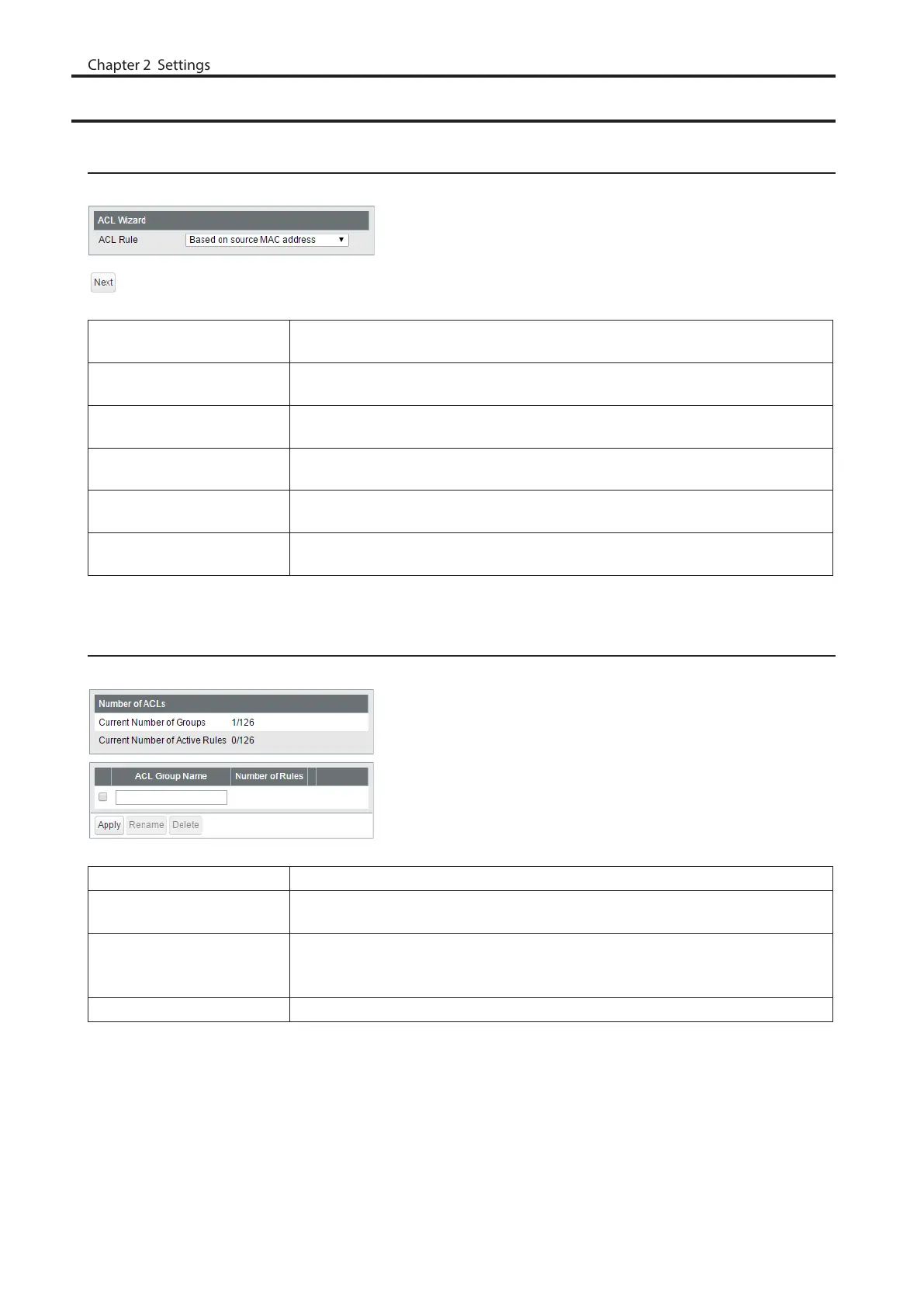 Number of Rules Displays the number of rules of each ACL group.