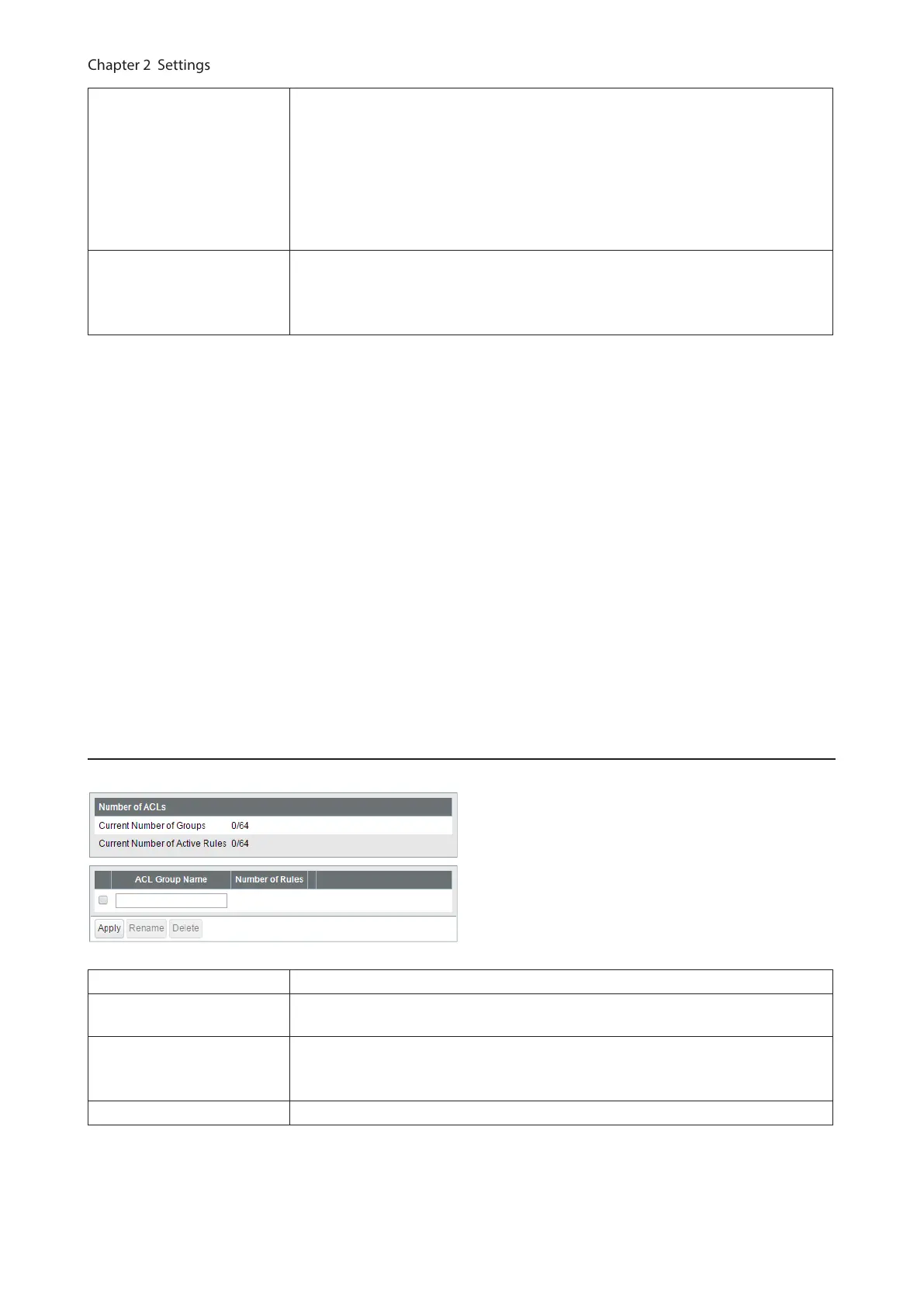 Number of Rules Displays the number of rules of each ACL group.