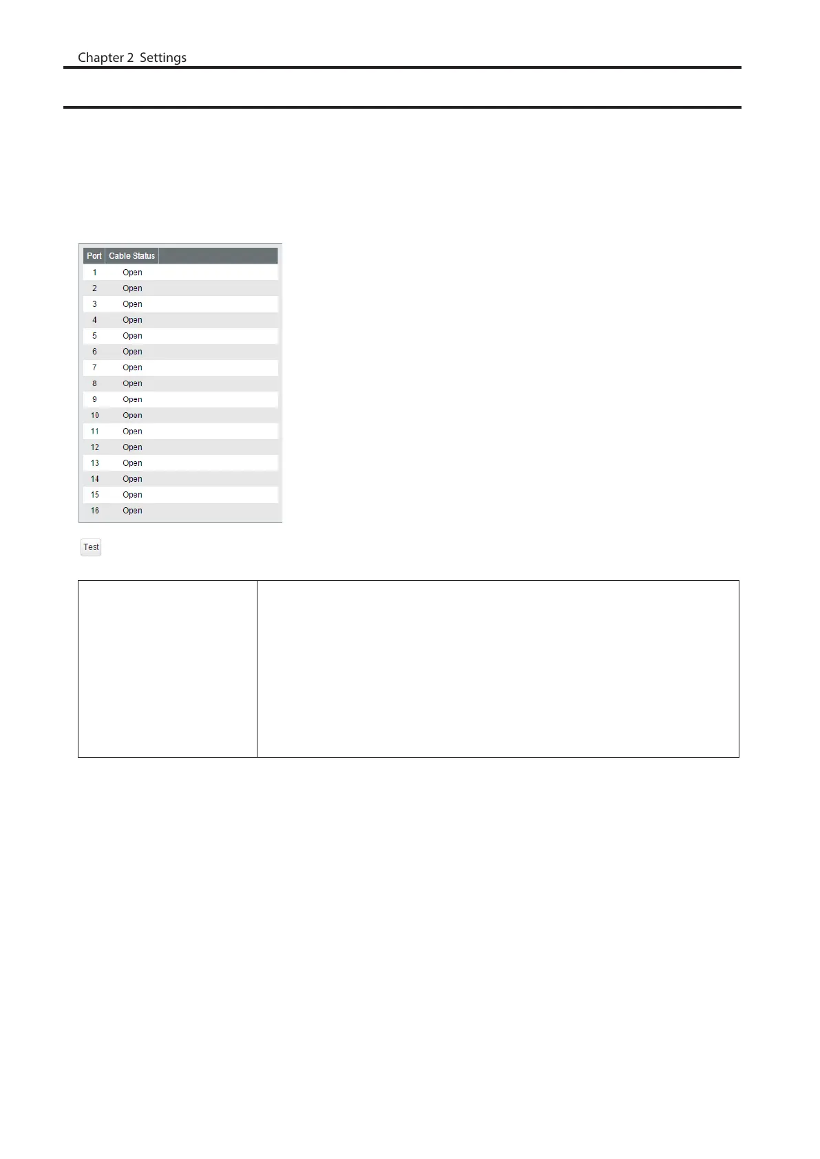 Click [Test] to check whether there are any issues with the Ethernet cable connected to each port.