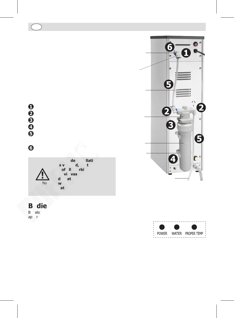 gevuld. Nadat het apparaat is gevuld, blijft de “WATER”-indicator constant branden.