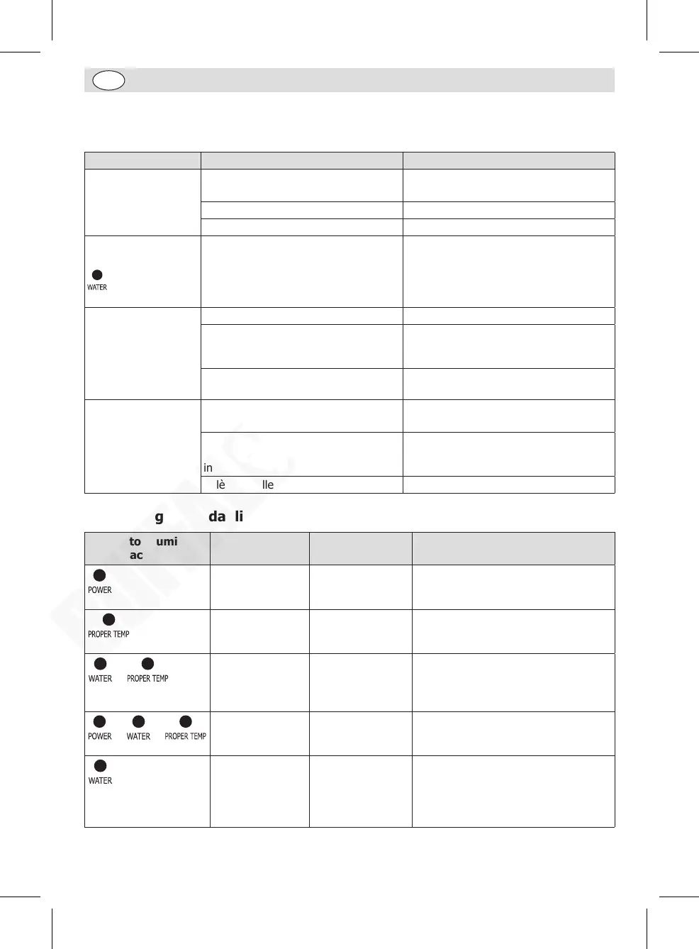 Malfunzionamento delle resistenze Rivolgersi a un tecnico qualificato