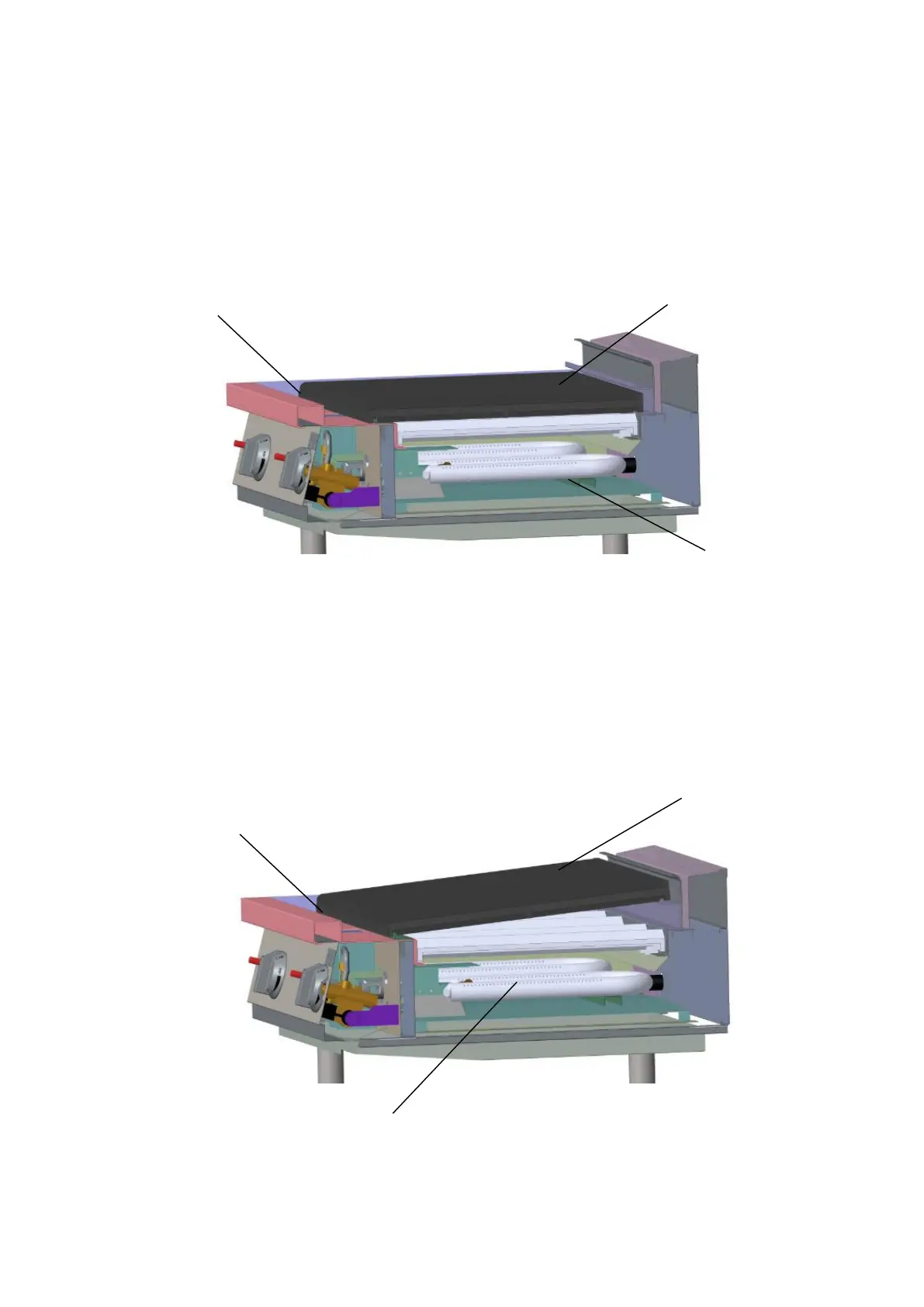 b. Inclined or slanted installation: Place each cooking grate over the front support flange