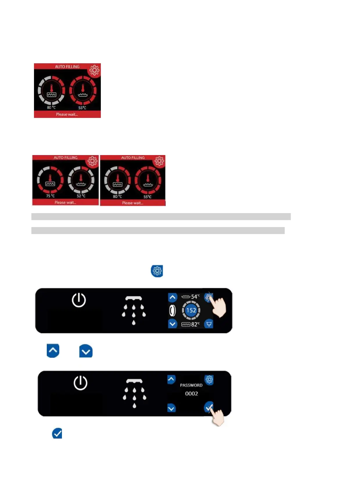 Note: The washing process will not start until the Washing tank and Boiler reach the set temperature