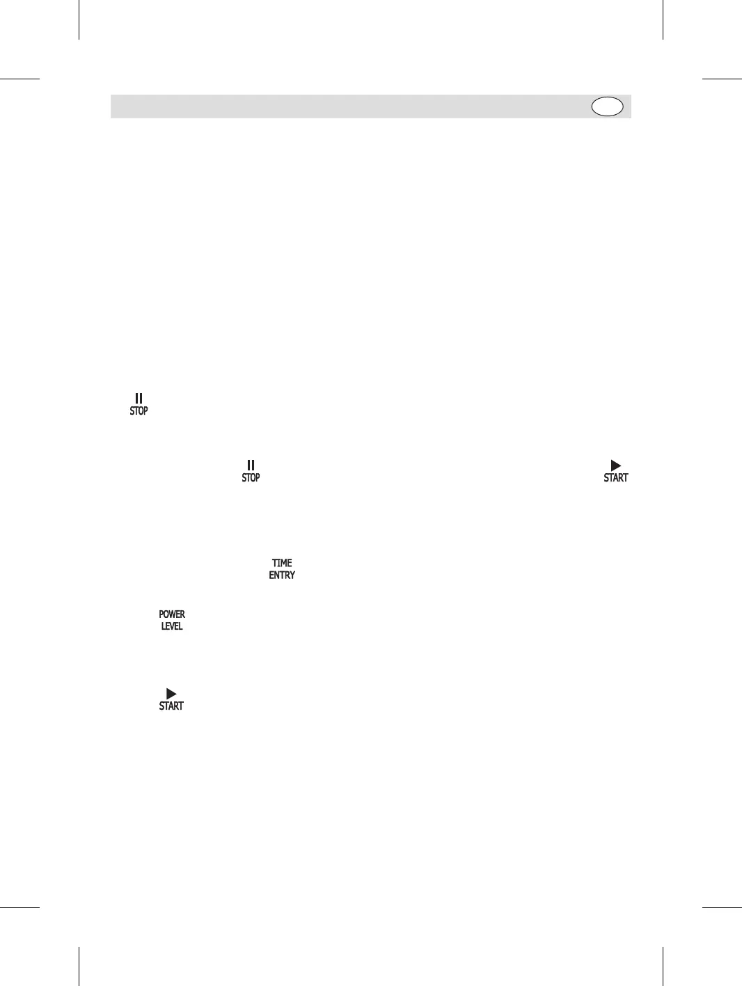 The user can manually set cooking time and power level while in this mode.