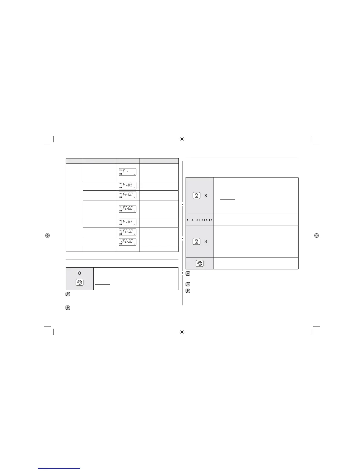 As programações mudam na seguinte ordem quando carrega nas teclas ocultas.