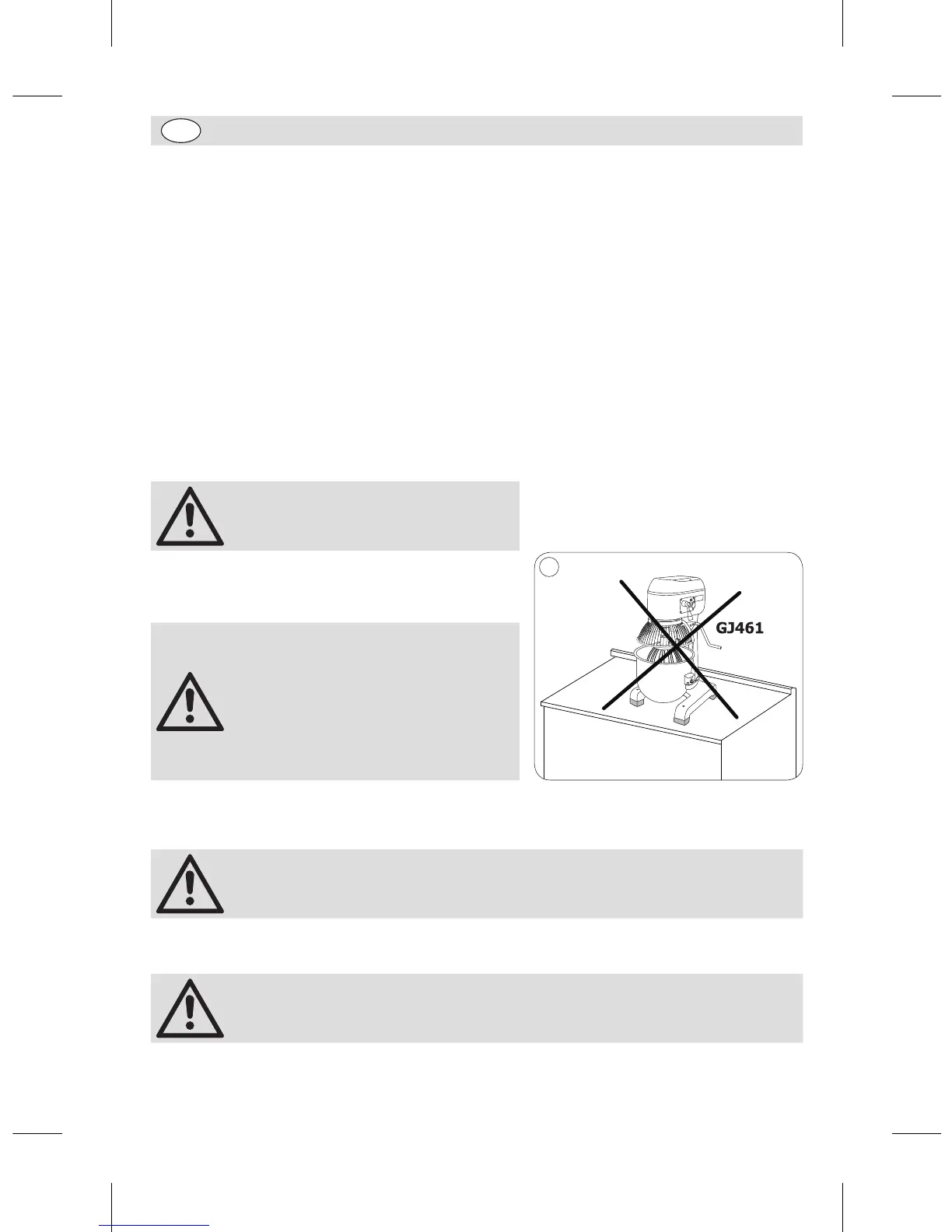 • Achten Sie darauf, dass die Planetenrührmaschine an einem Ort aufgestellt wird, der das Gewicht der