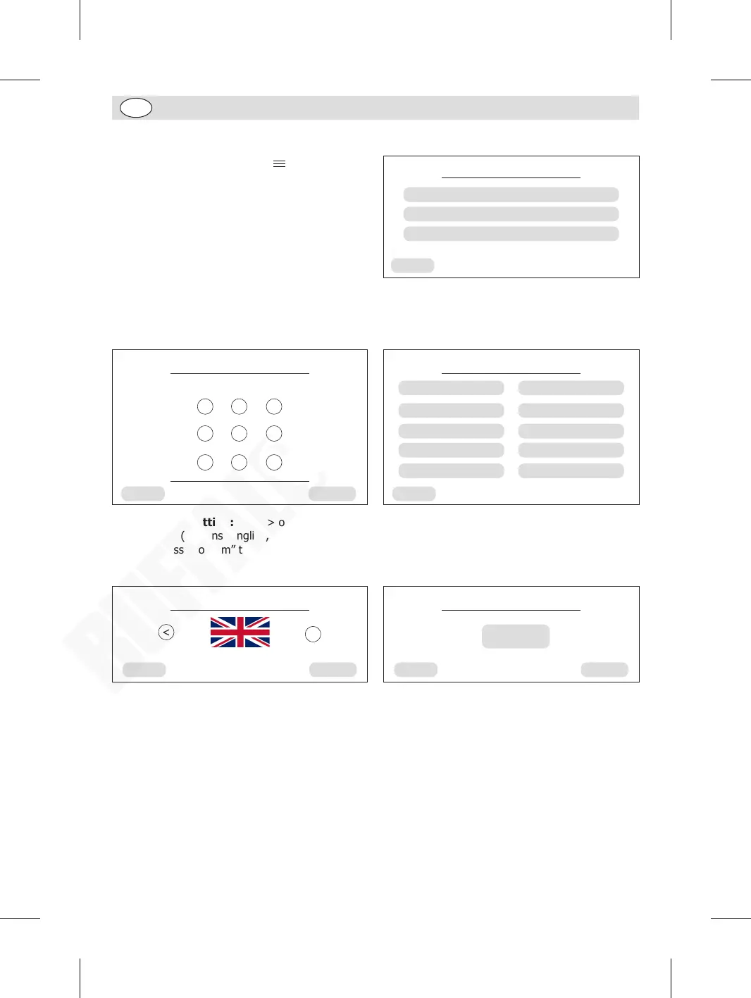 1. Language setting: Press > or < to select