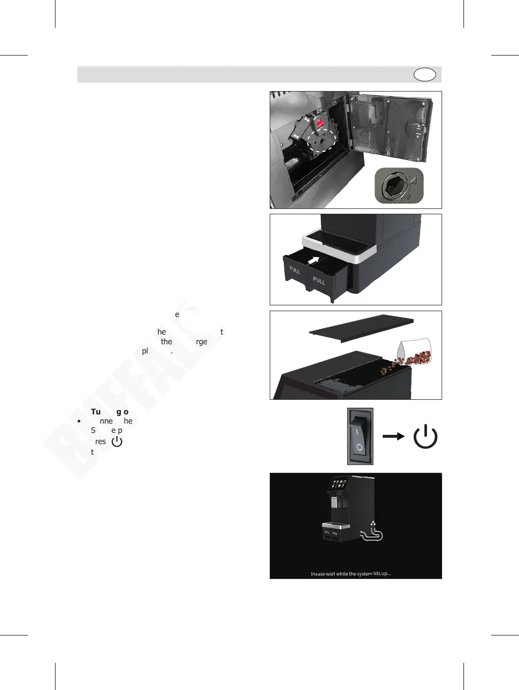4. Add coffee beans into the coffee bean tank.