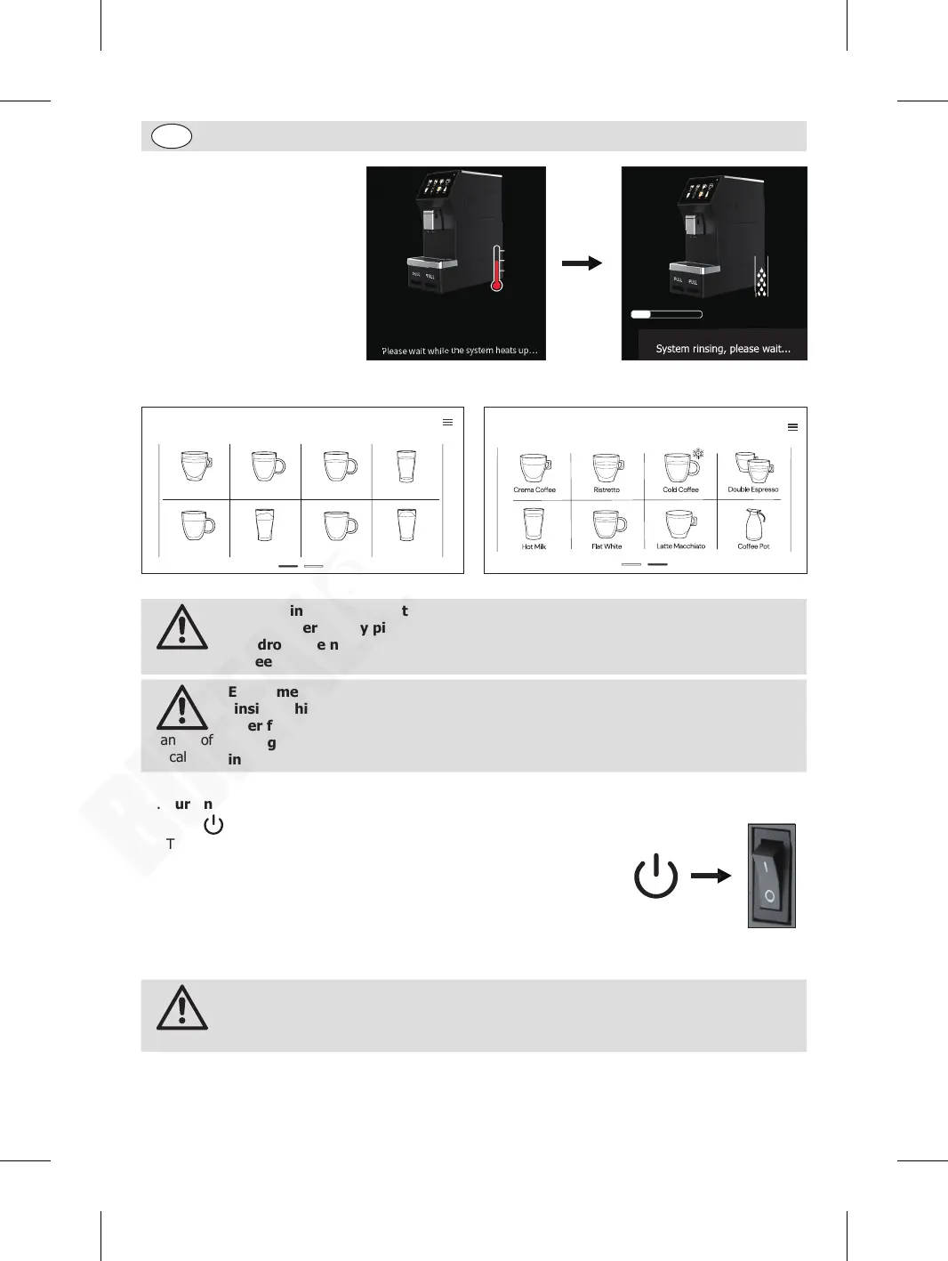 9. After the intial preheating and rinsing, the home page will be shown. The appliance is now ready for