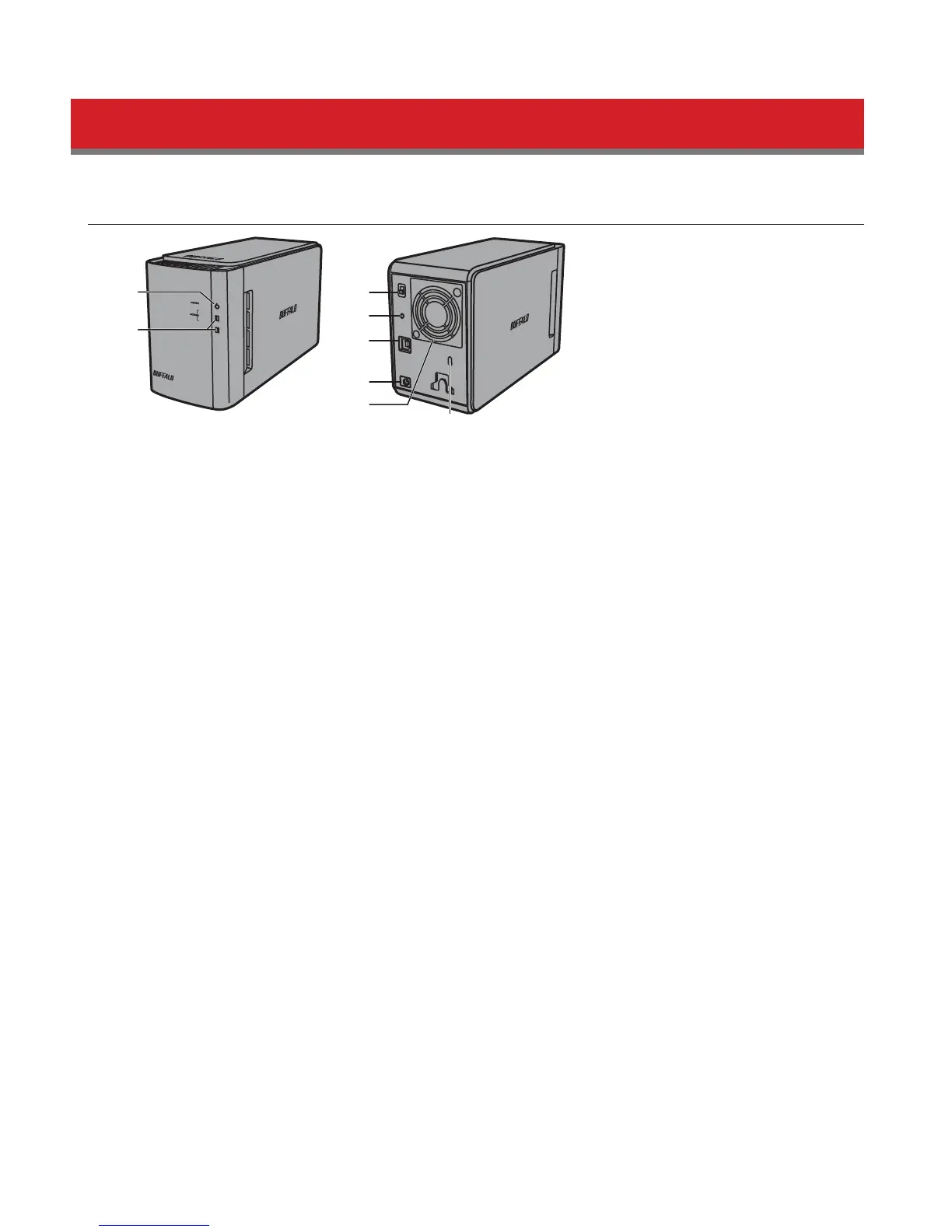 These indicate the status of the built-in hard drives. The top LED indicates the status for Disk 1 and the bottom LED