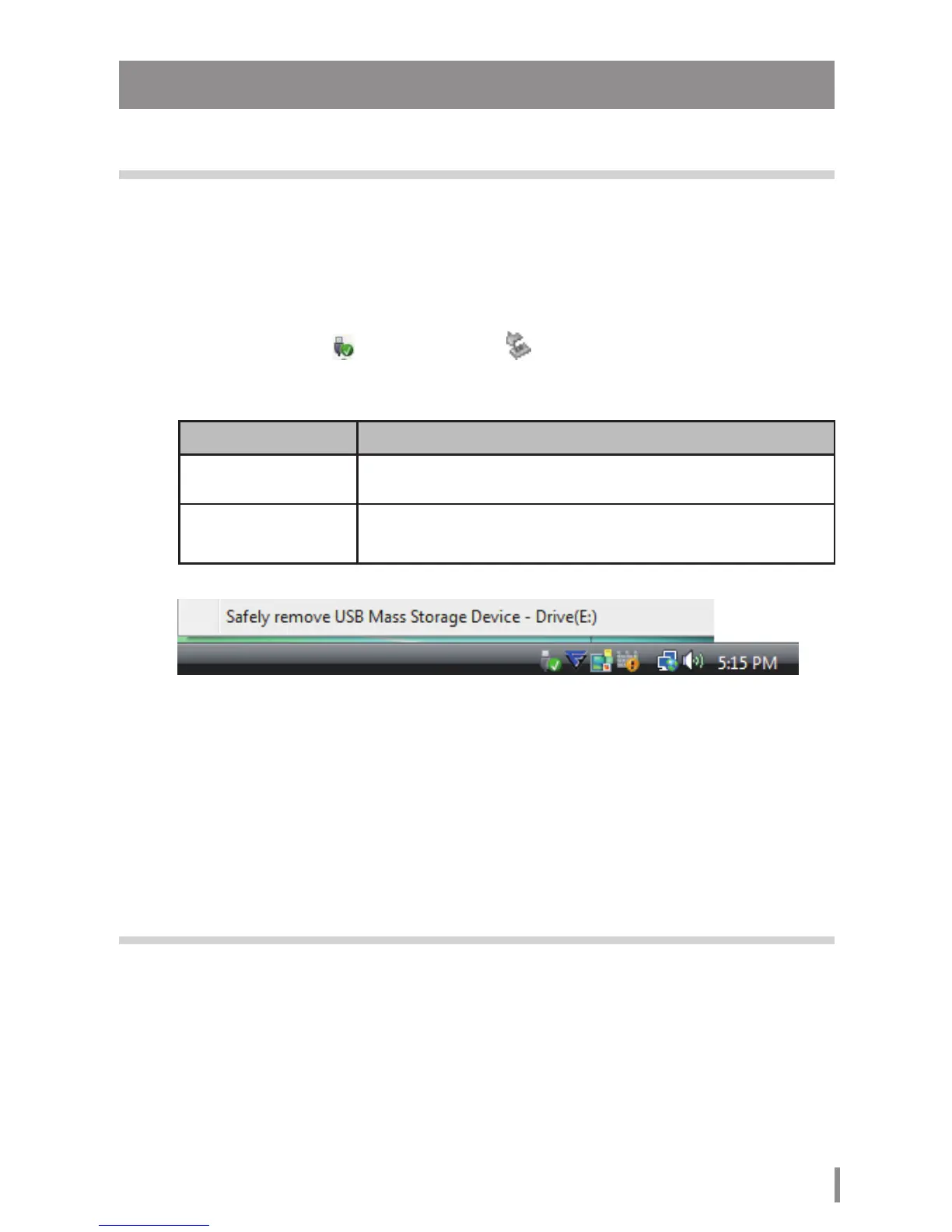 Windows Vista/XP "Quitar dispositivo de almacenamiento masivo USB de forma segura – Unidad (E:)"