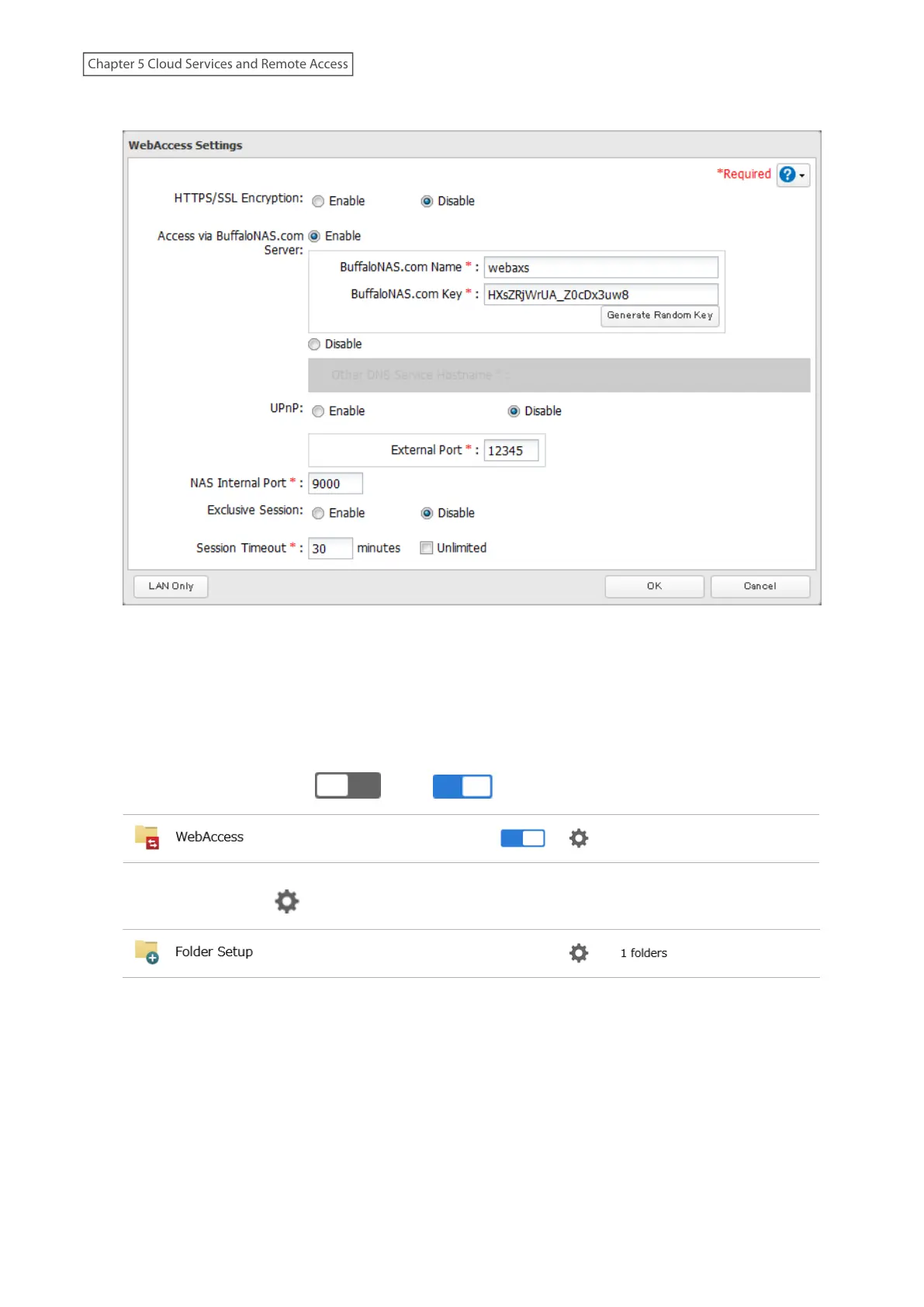 • Choose a “BuffaloNAS.com Name” and “BuffaloNAS.com Key” for your WebAccess account. Names and keys
