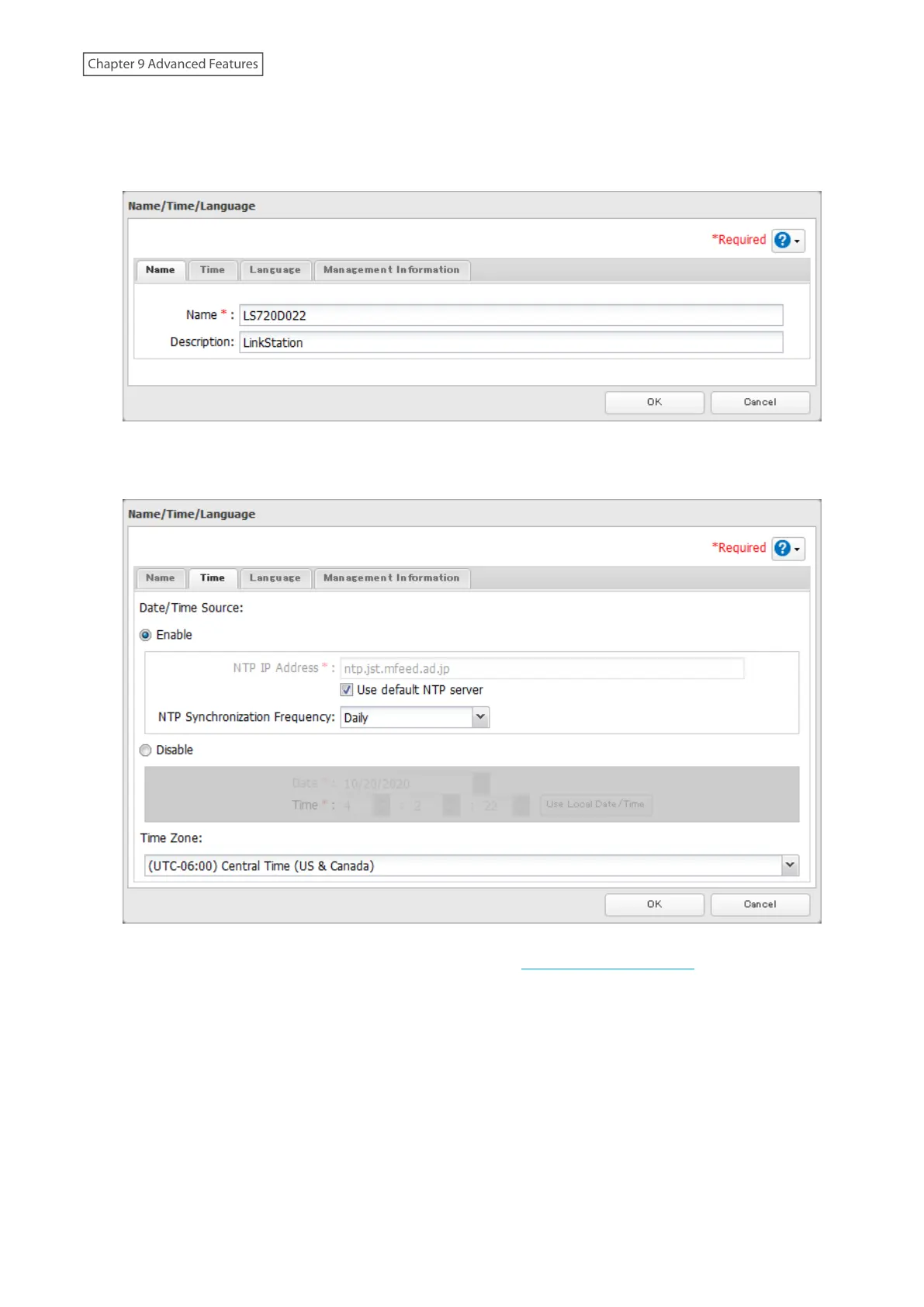 By default, the LinkStation adjusts its clock automatically by using a default NTP server. This NTP server