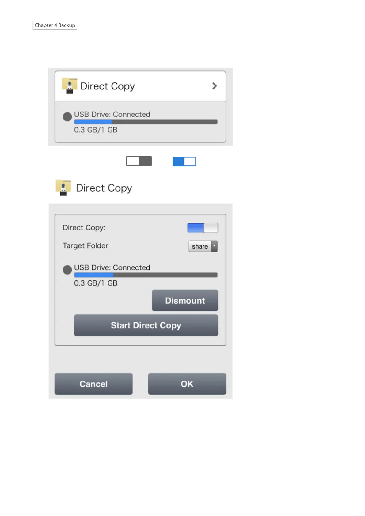 2 Move the Direct Copy switch ( ) to the position to enable Direct Copy.