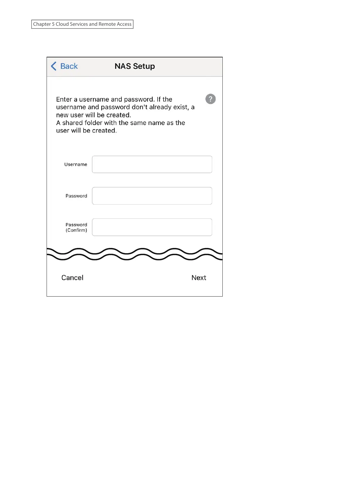 4 Enter a username and password (twice), then tap Next. If the user with the entered username doesn’t already