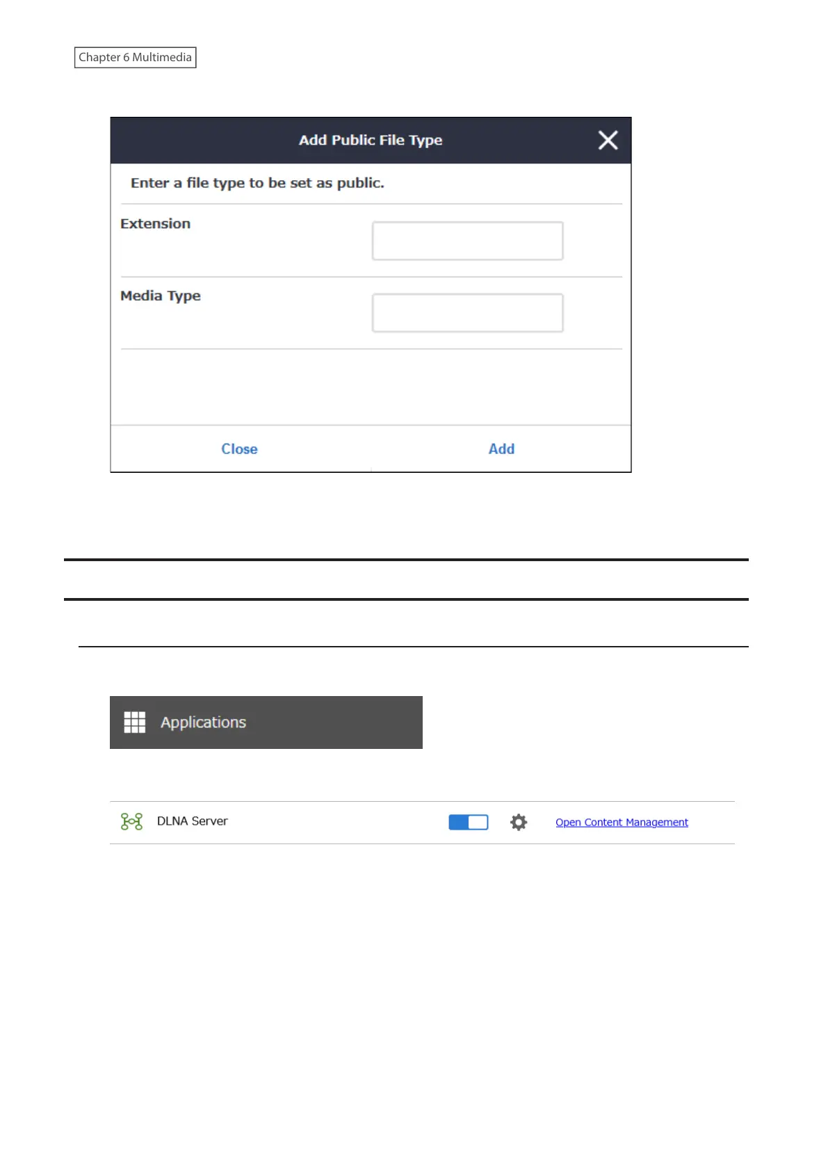 5 Enter an extension and media type (MIME type), then click Add.