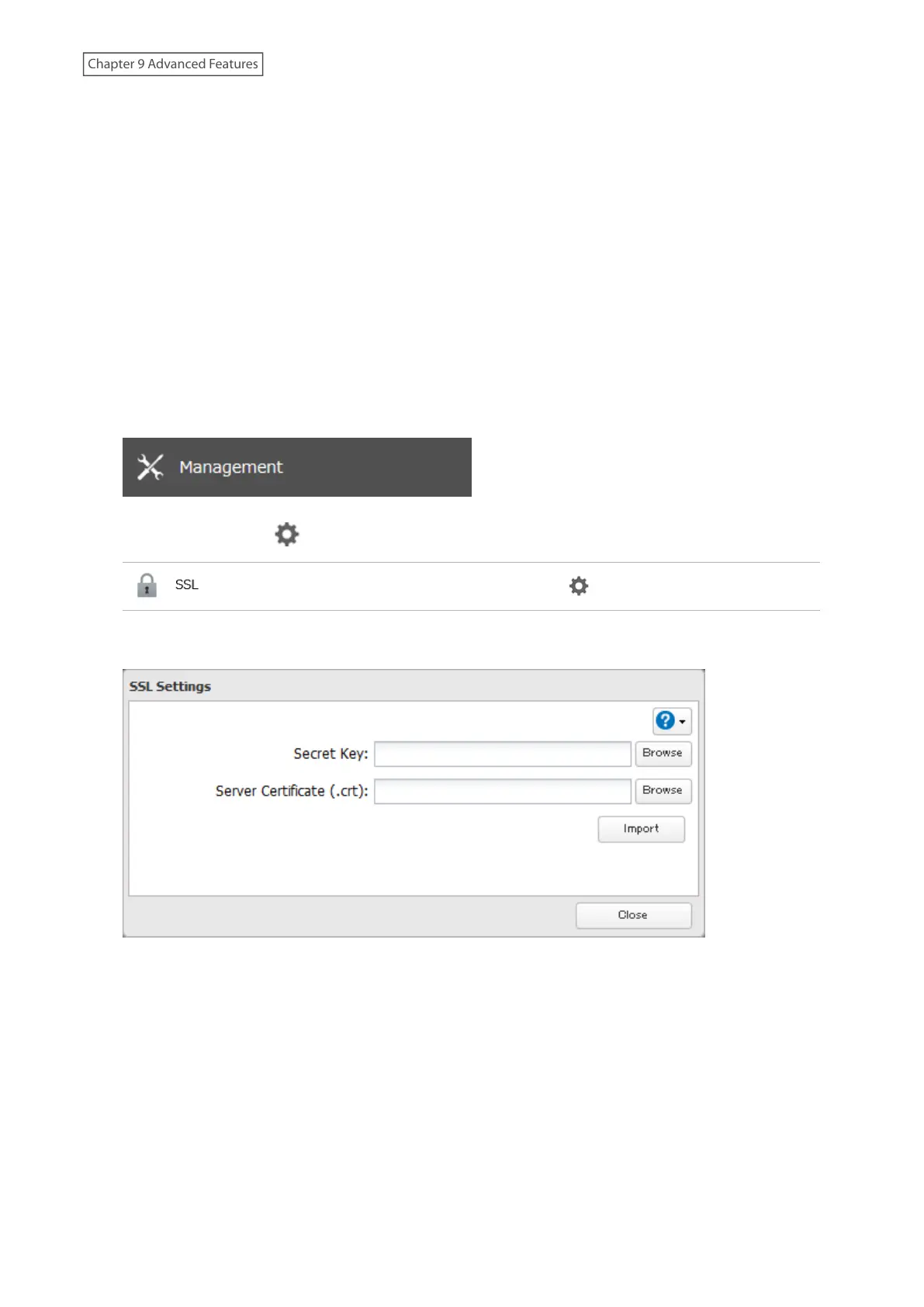 3 Register “server.key” for “Secret Key” and “server.crt” for “Server Certificate (.crt)”, then click Import.