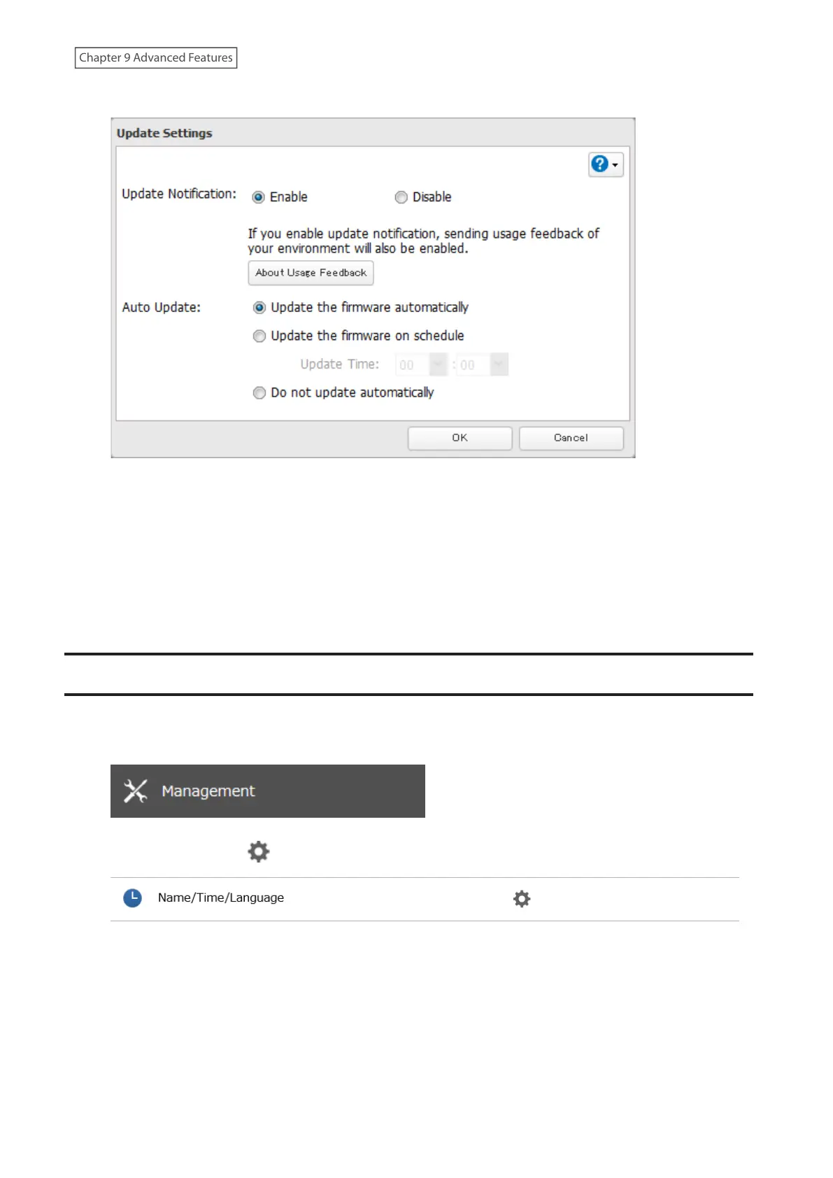 If update notification is enabled, it will also automatically enable sending usage feedback to Buffalo. If you don’t