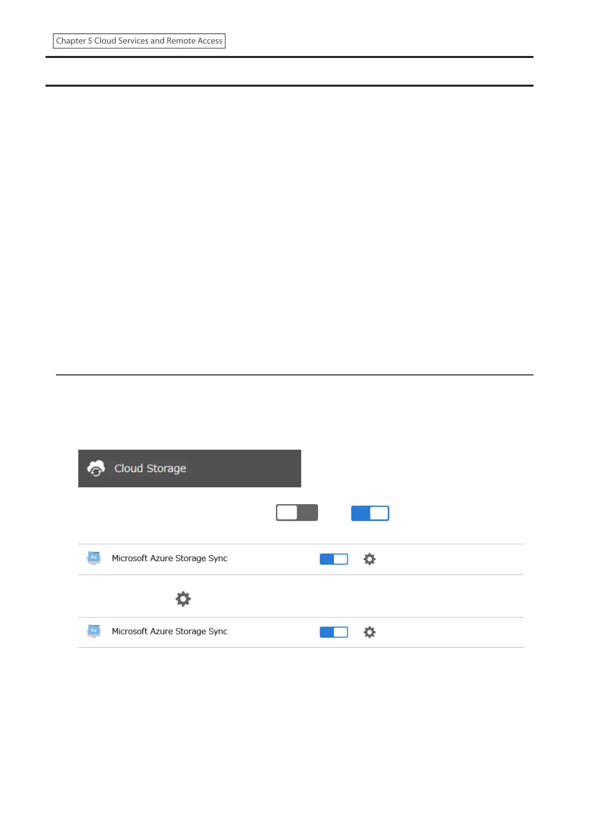 3 Move the Microsoft Azure Storage Sync switch ( ) to the position to enable Microsoft Azure