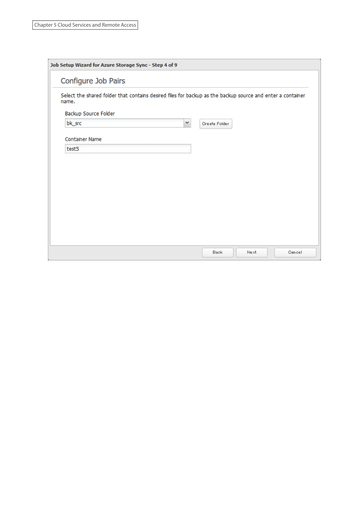 9 Select the desired shared folder on the LinkStation as the backup source folder and enter the container name