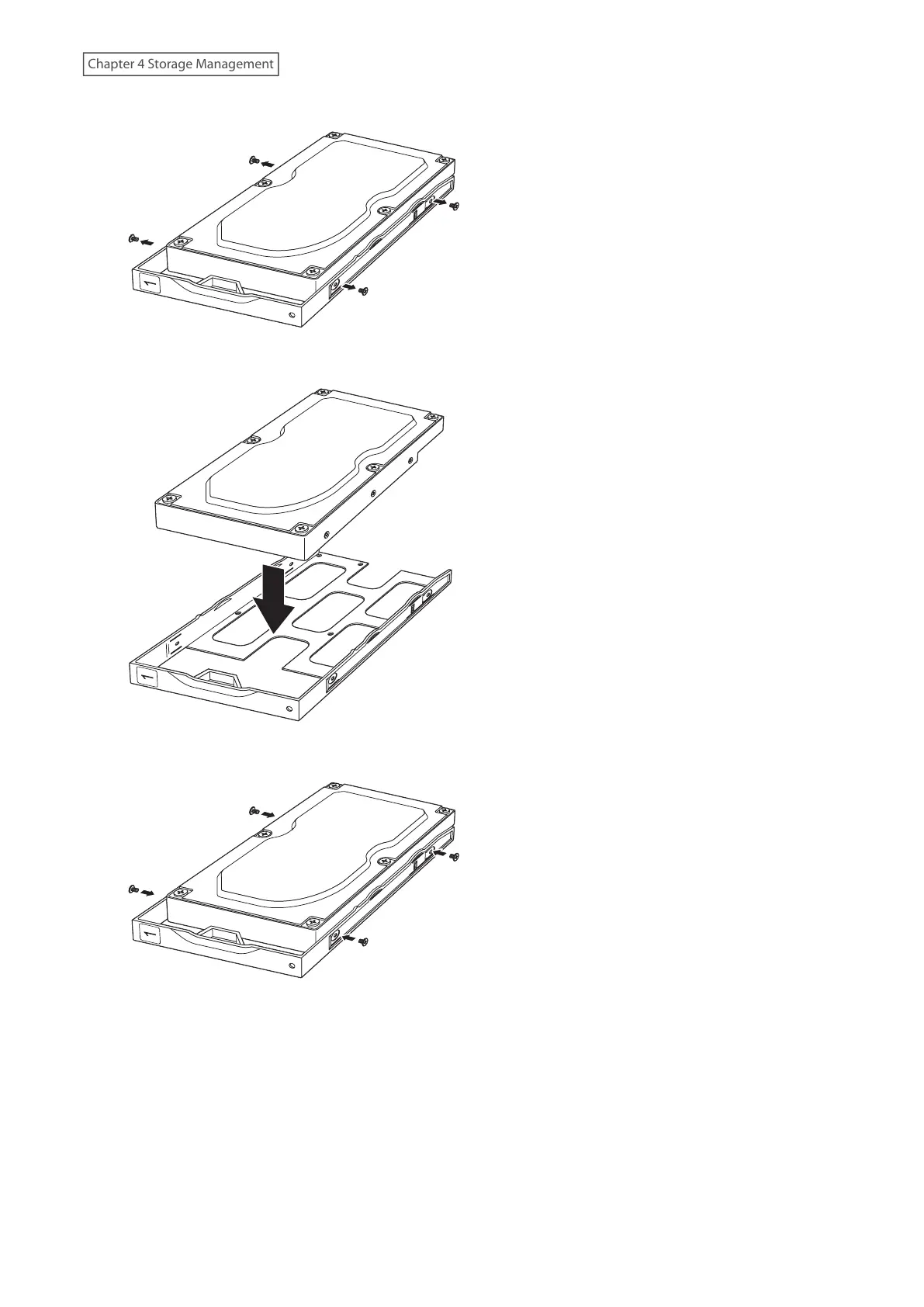 4 Unscrew the four screws and remove the drive from the cartridge.