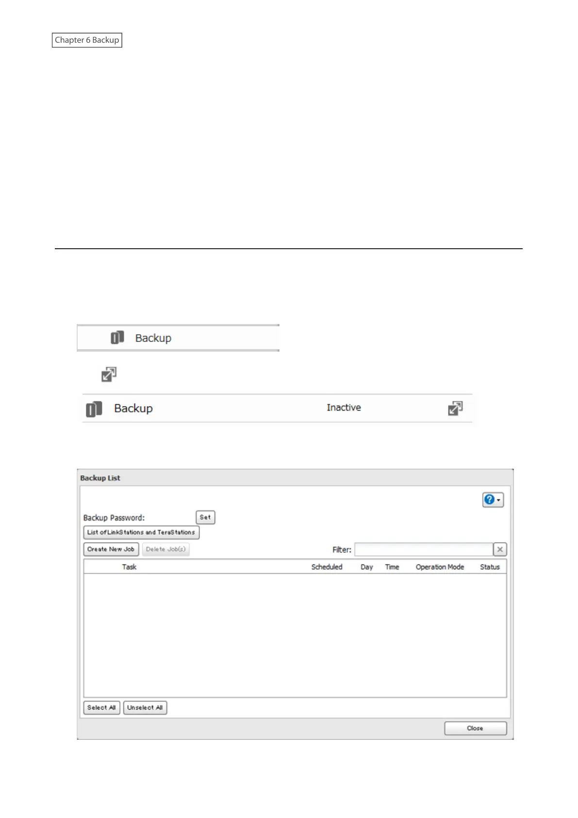 (1) From the Backup Job Settings screen, click [LinkStation and TeraStation List].