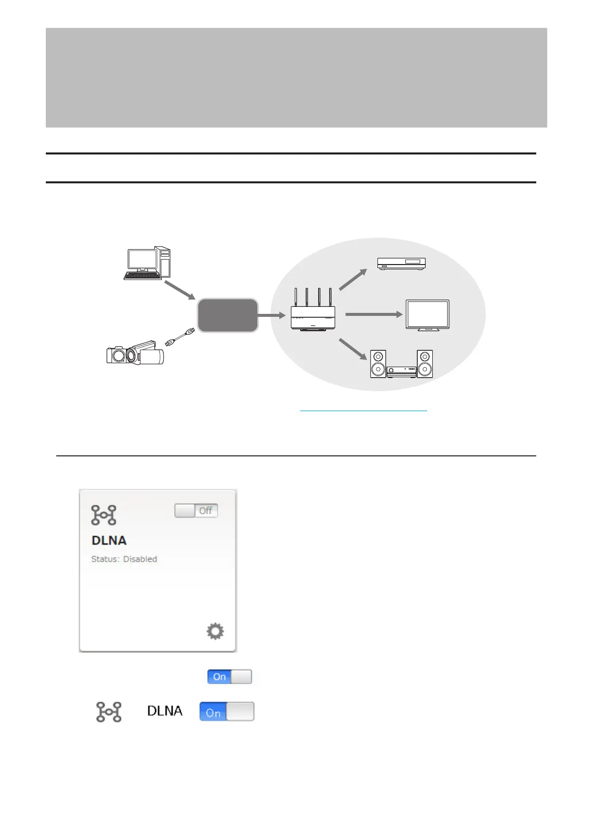 2 Move the DLNA switch to the position to enable DLNA.
