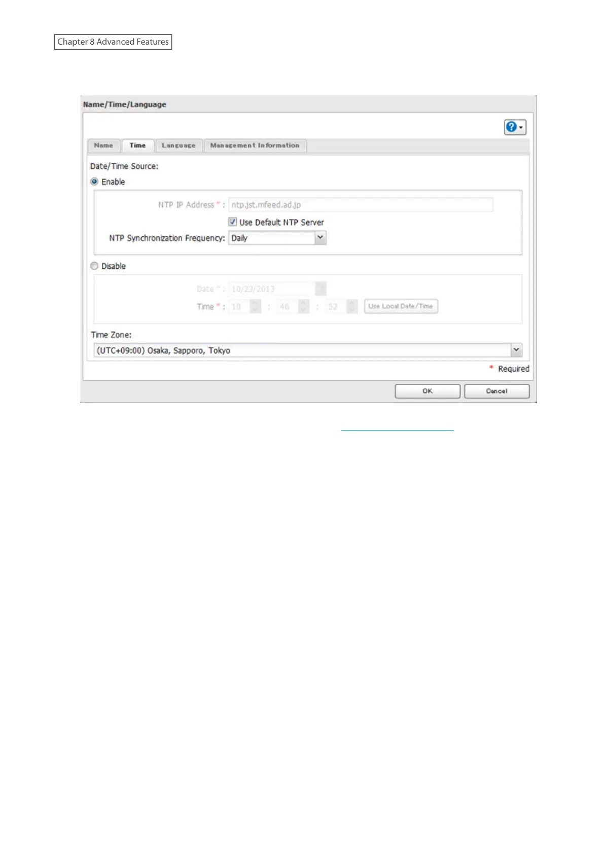 its hostname, then click [OK]. If an NTP server is specified by name instead of IP address, make sure that a DNS