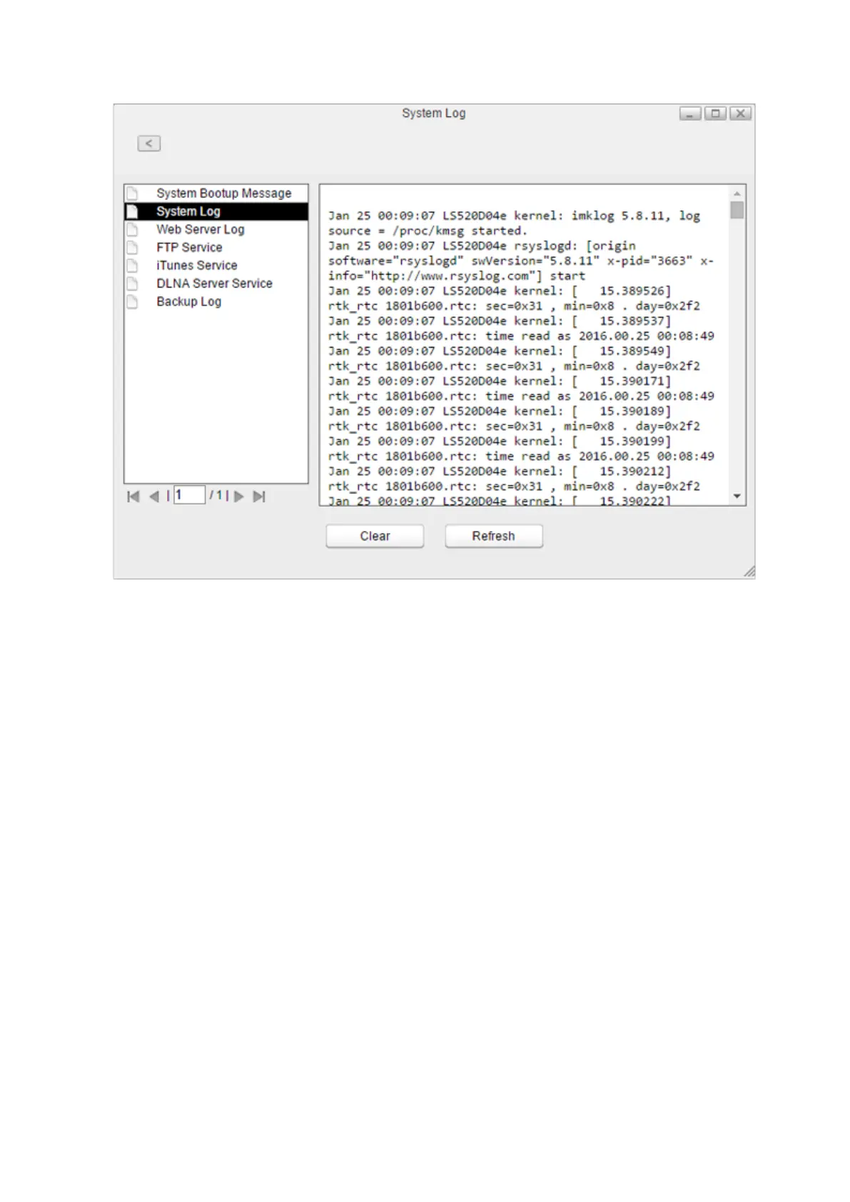 3 The system log window will open.