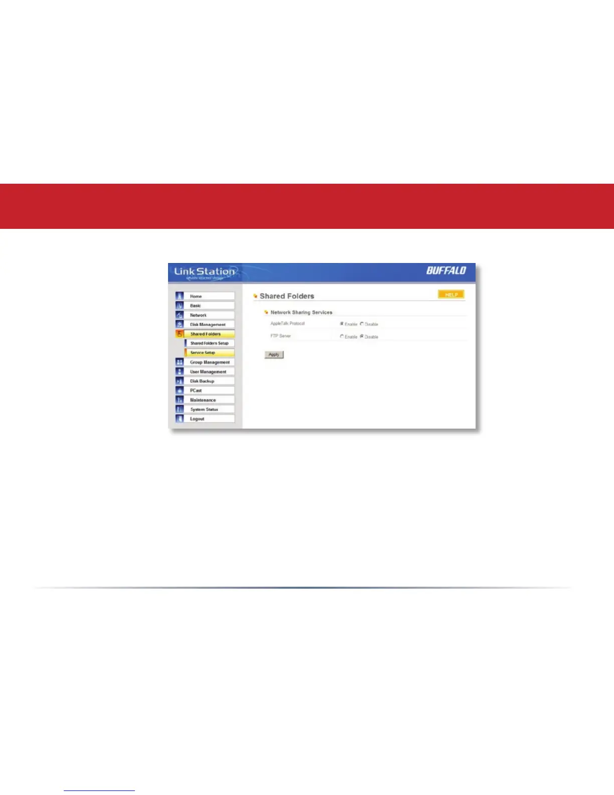 To allow FTP Access to LinkStation, choose Enable for FTP Server. To enable legacy AppleTalk