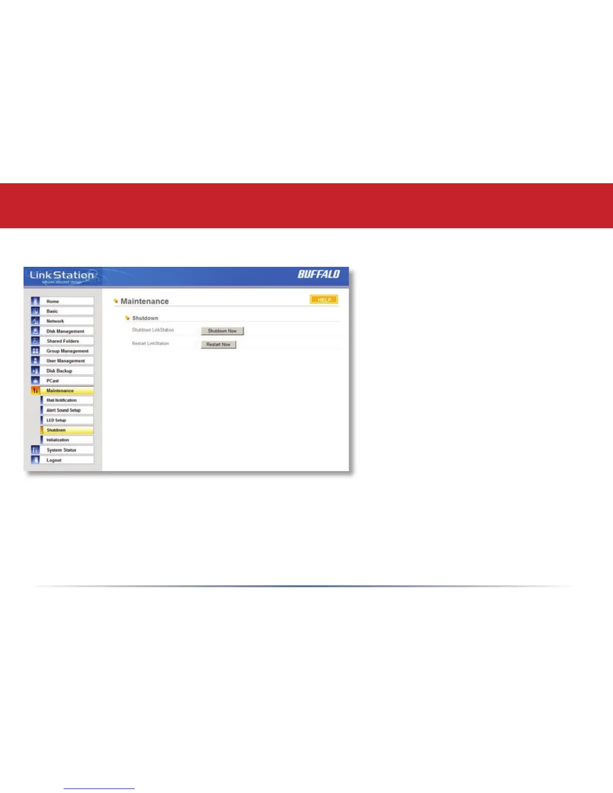 From the Shutdown page, press Apply to shutdown LinkStation. This has the same function as