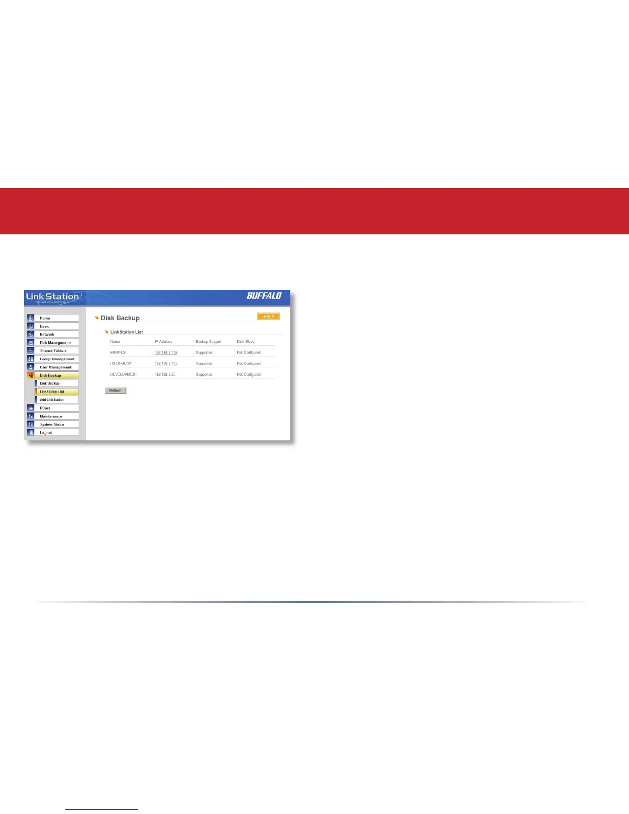 The LinkStation list shows other LinkStations in your network that you can confi gure network
