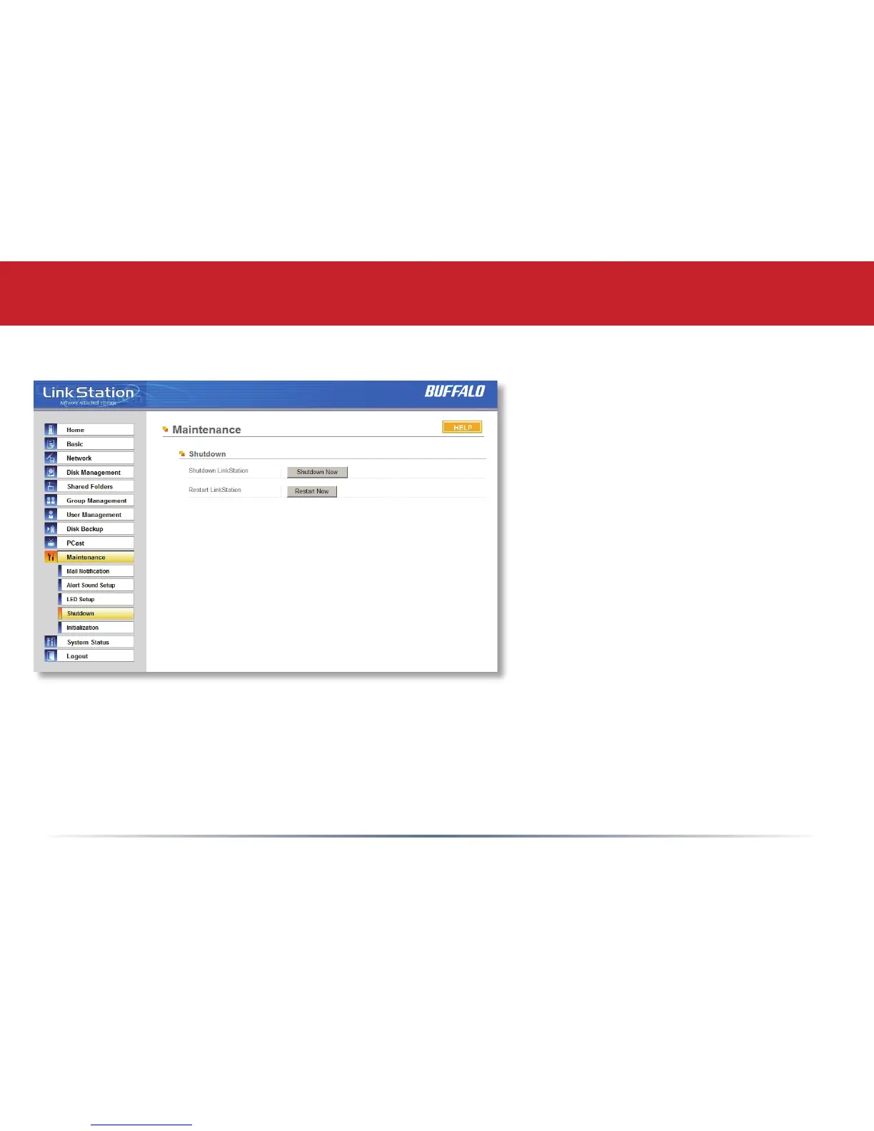 From the Shutdown page, press Apply to shutdown LinkStation. This has the same function as