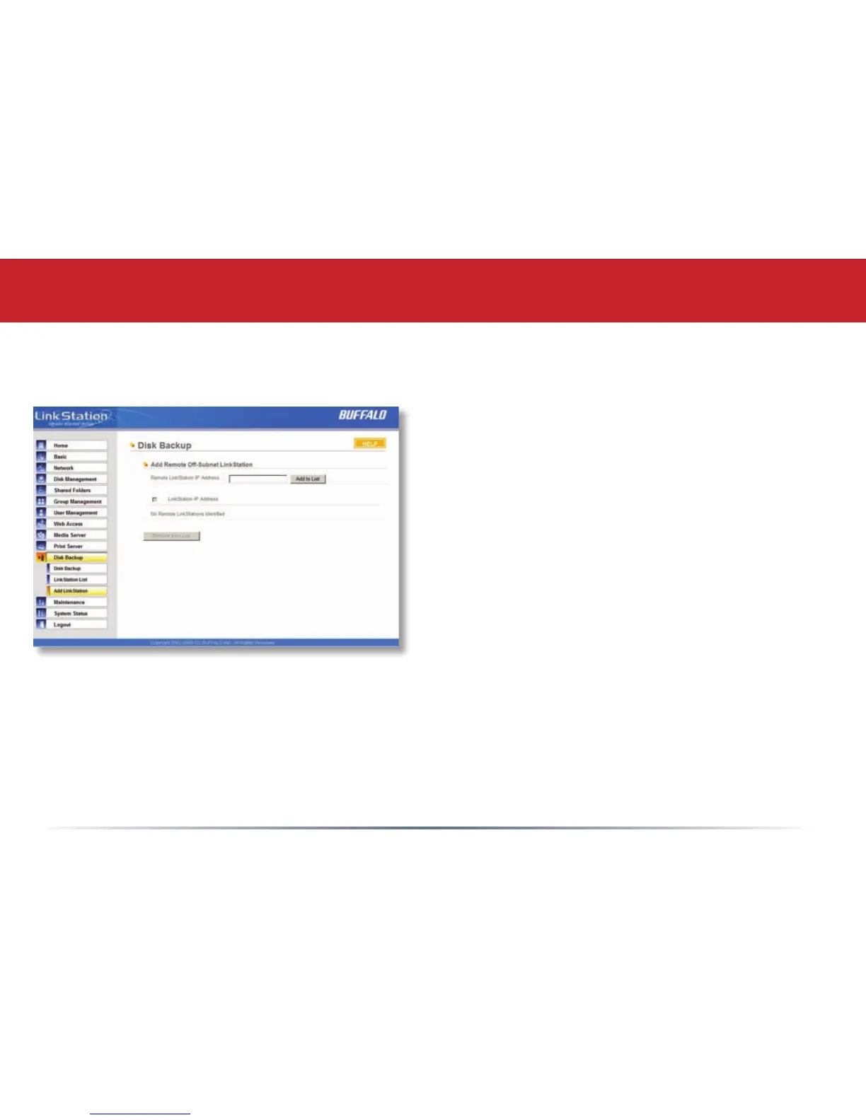 LinkStation IP Address eld and click the Add to List button. For remote LinkStation backups,