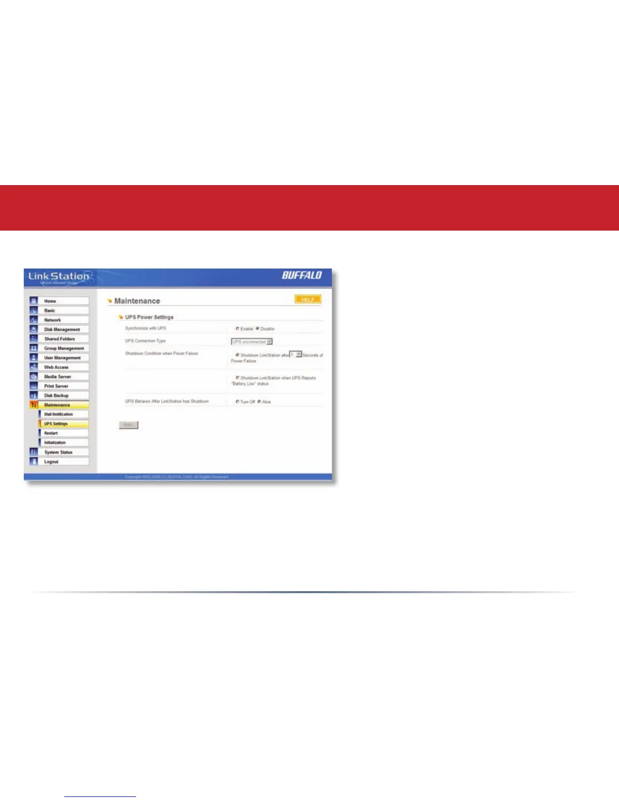 settings on this page can only be changed while a supported UPS is connected to the LinkStation.